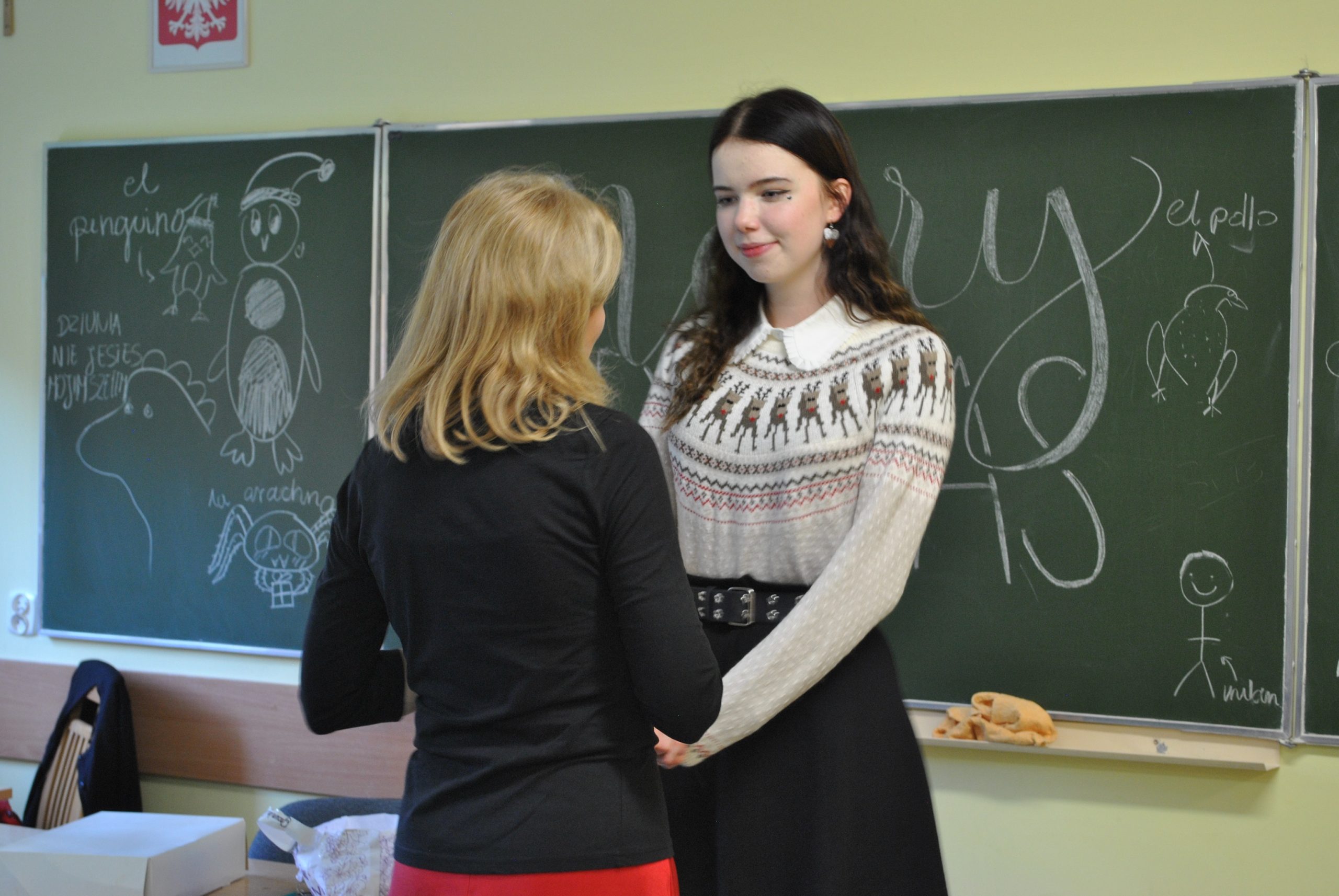 Były życzenia, opłatek dla każdego, wspólne śpiewanie kolęd, prezenty, biesiada przy suto zastawionych ławkach szkolnych. Każdą z klas odwiedził dyrektor szkoły składając życzenia świąteczno-noworoczne uczniom i nauczycielom.