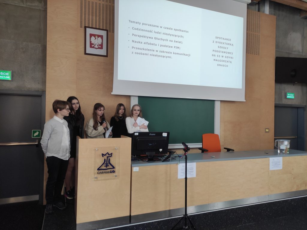Zwieńczeniem działań projektowych był udział młodzieży w Gali Konkursowej, która odbyła się 2 czerwca br. na Uniwersytecie Gdańskim. Grupy zaprezentowały efekty swoich działań przed pozostałymi uczestniczkami i uczestnikami projektu oraz jury konkursowym. Serdecznie gratulujemy grupie „Usłyszeć Niesłyszących” zajęcia III miejsca w konkursie. Wszystkim uczestnikom i uczestniczkom gratulujemy wspaniałych pomysłów, pasji do działania i pomagania potrzebującym.