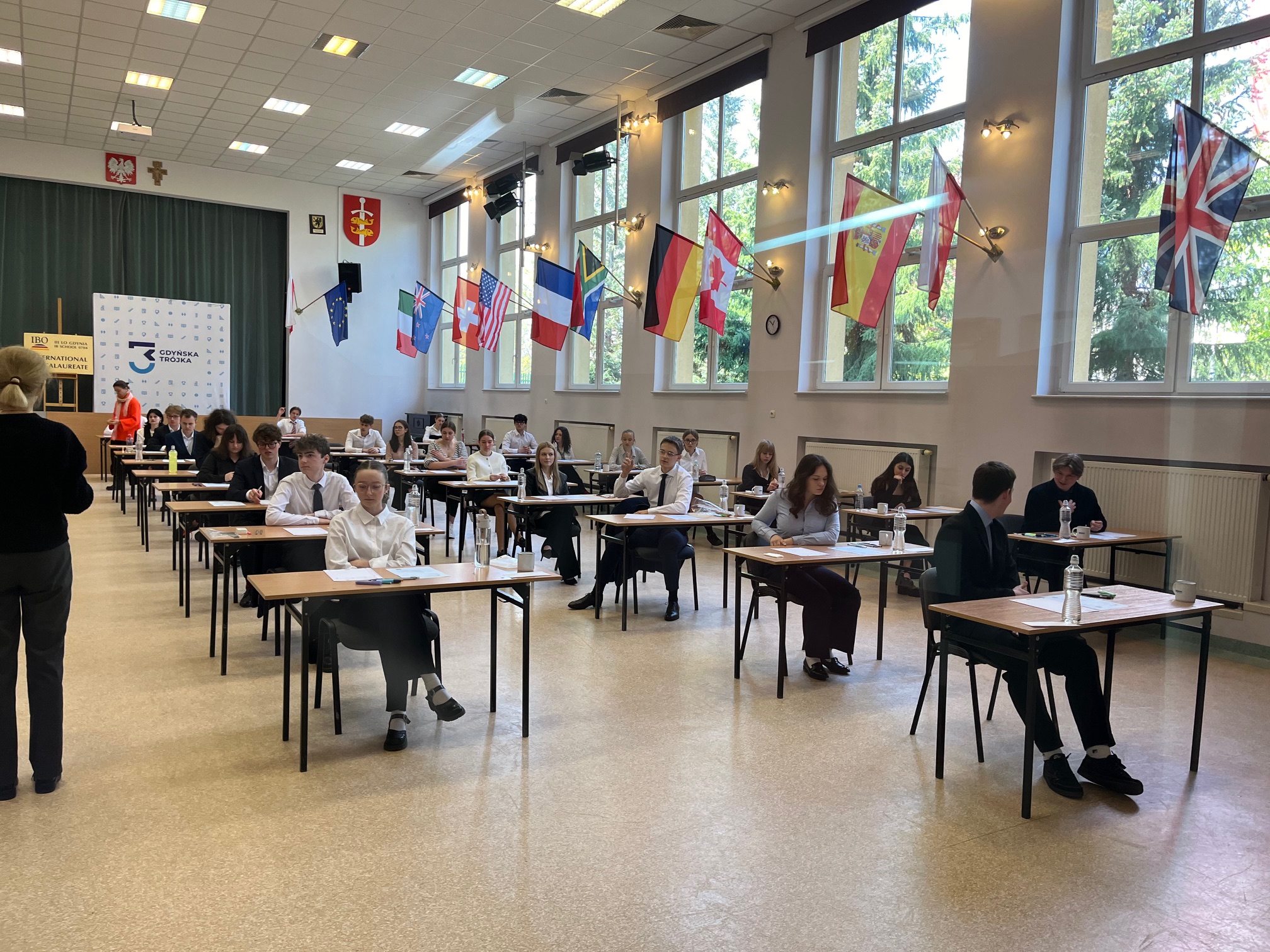 Dzisiaj, 24 IV 2024 w auli III LO w Gdyni punktualnie o godz. 13:00 rozpoczęła się sesja maturalna (matura międzynarodowa) – pisemny egzamin z języka polskiego, do którego przystąpiło 52 absolwentek i absolwentów III LO w Gdyni (Gdynia IBO WORLD School 0704).