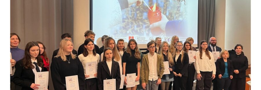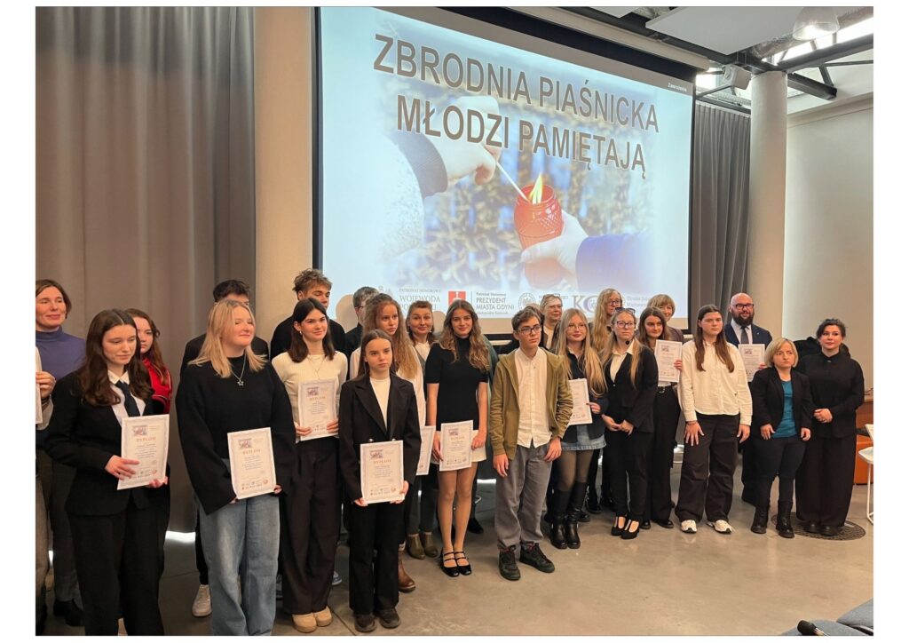 W piątek 28 listopada 2025 roku o godz. 10:00 w auli Zespołu Szkół Administracyjno – Ekonomicznych w Gdyni odbyła się gala finałowa VII Pomorskiego Konkursu „ZBRODNIA PIAŚNICKA – MŁODZI PAMIĘTAJĄ”, który zorganizowany został pod honorowym patronatem Wojewody Pomorskiej Beaty Rutkiewicz, Pomorskiego Kuratora Oświaty Grzegorza Krygera, Prezydenta Miasta Gdyni Aleksandry Kosiorek oraz Instytutu Pamięci Narodowej w Gdańsku, Instytutu Debaty Publicznej w Gdańsku i Muzeum Piaśnickiego w Wejherowie.