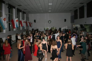 Bal, w którym uczestniczyło sto kilkadziesiąt uczennic i uczniów, był nie tylko okazją do zwrócenia uwagi na osoby ze „srebrnego” pokolenia, ale także stworzył możliwość lepszej integracji młodzieży Gdyńskiej Trójki. To wyjątkowe pod każdym względem szkolne przedsięwzięcie poprowadzili czwartoklasiści: Szymon Głuchowski i Marianna Skowronek, która niedawno przekazała młodszej koleżance obowiązki Przewodniczącej Samorządu Uczniowskiego. Podczas balu młodzież zatańczyła m.in.: poloneza, belgijkę, macarenę…