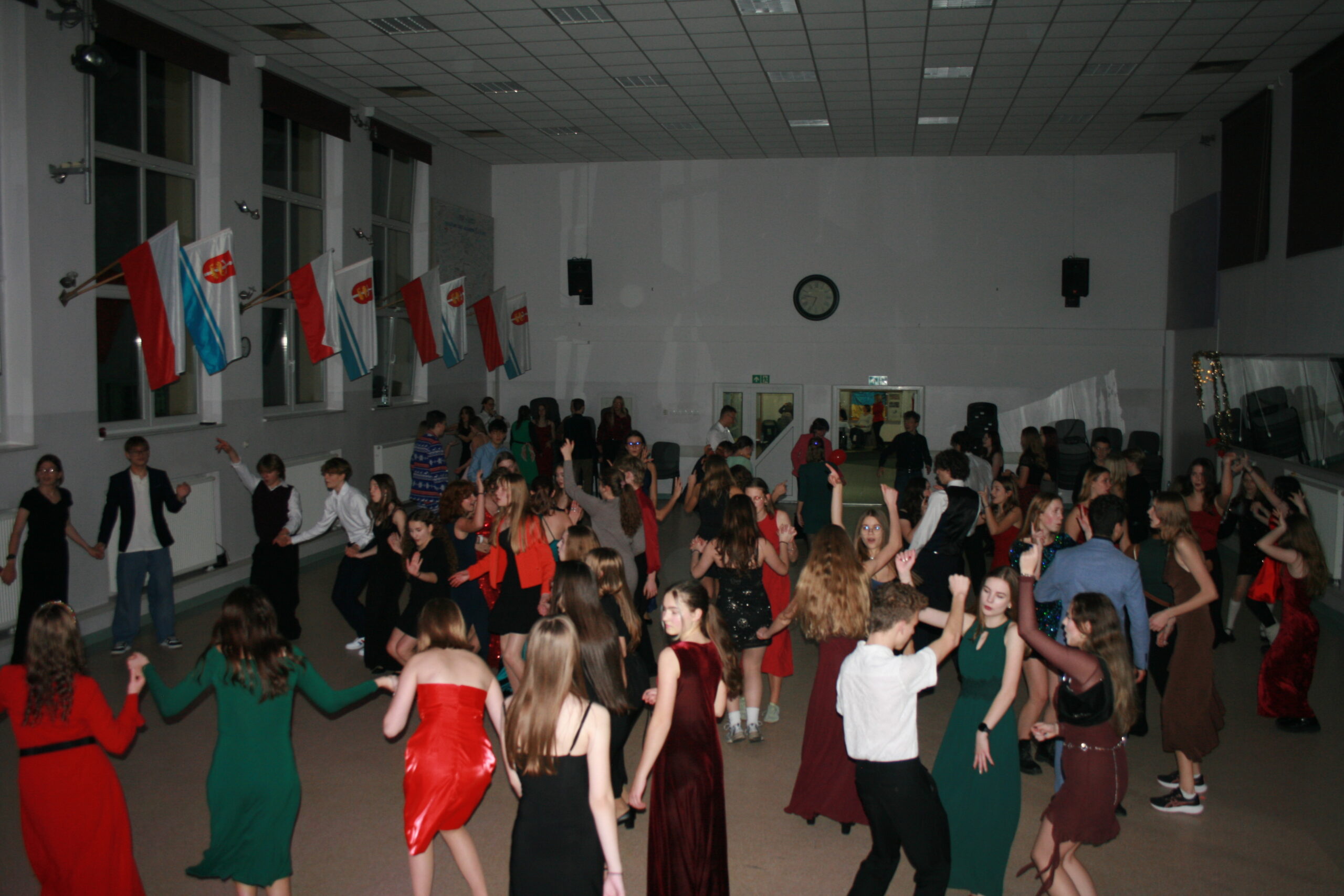 Bal, w którym uczestniczyło sto kilkadziesiąt uczennic i uczniów, był nie tylko okazją do zwrócenia uwagi na osoby ze „srebrnego” pokolenia, ale także stworzył możliwość lepszej integracji młodzieży Gdyńskiej Trójki. To wyjątkowe pod każdym względem szkolne przedsięwzięcie poprowadzili czwartoklasiści: Szymon Głuchowski i Marianna Skowronek, która niedawno przekazała młodszej koleżance obowiązki Przewodniczącej Samorządu Uczniowskiego. Podczas balu młodzież zatańczyła m.in.: poloneza, belgijkę, macarenę…