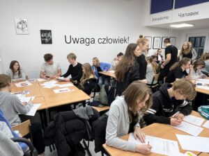 Czwartkowy wieczór 11 grudnia 2025 zgromadził w gabinecie edukacji obywatelskiej w „Gdyńskiej Trójce” kilkadziesiąt osób. Z inicjatywy lub pod opieką nauczycielek: Anny Czernihowskiej-Tymoszyk, Olgi Wrońskiej, Izabeli Radziuk-Śliwińskiej oraz Marty Bielak-Bodnar uczennice i uczniowie z różnych klas napisali od godziny 16:00 do godziny 22:00 kilkaset listów w obronie osób więzionych za swoje przekonania polityczne. Gabinet lekcyjny, w którym każdego dnia prowadzone są lekcje historii, wiedzy o społeczeństwie i edukacji obywatelskiej z uwagi na swój wystrój i zamieszczoną na jednej ze ścian Deklaracją Praw Człowieka jest nader sprzyjającym miejscem na Maraton Pisania Listów w obronie więźniów politycznych.
