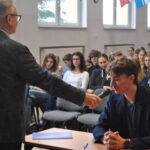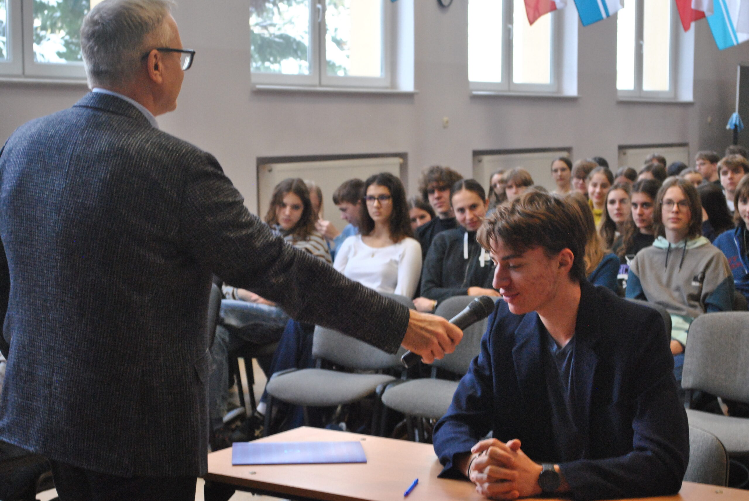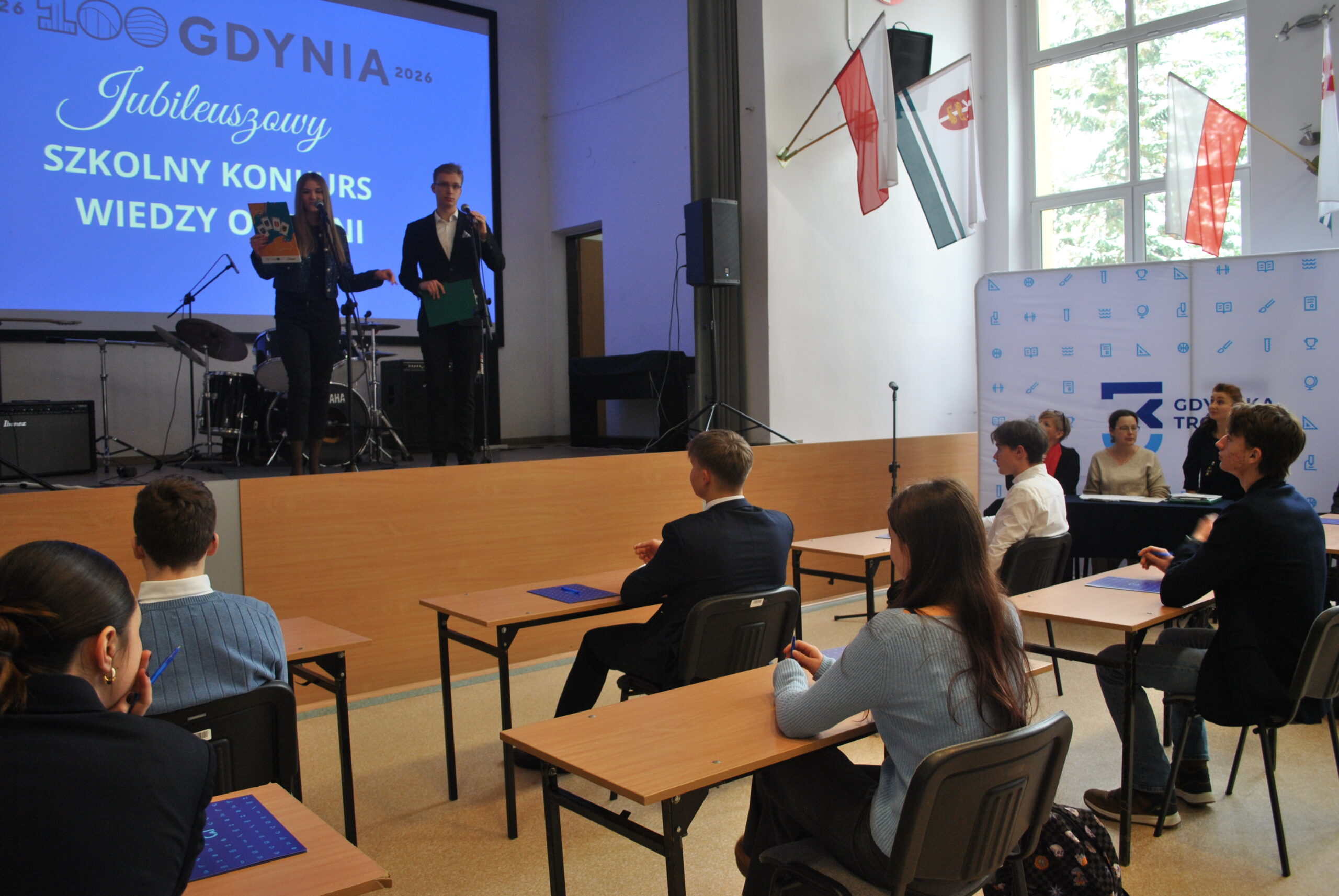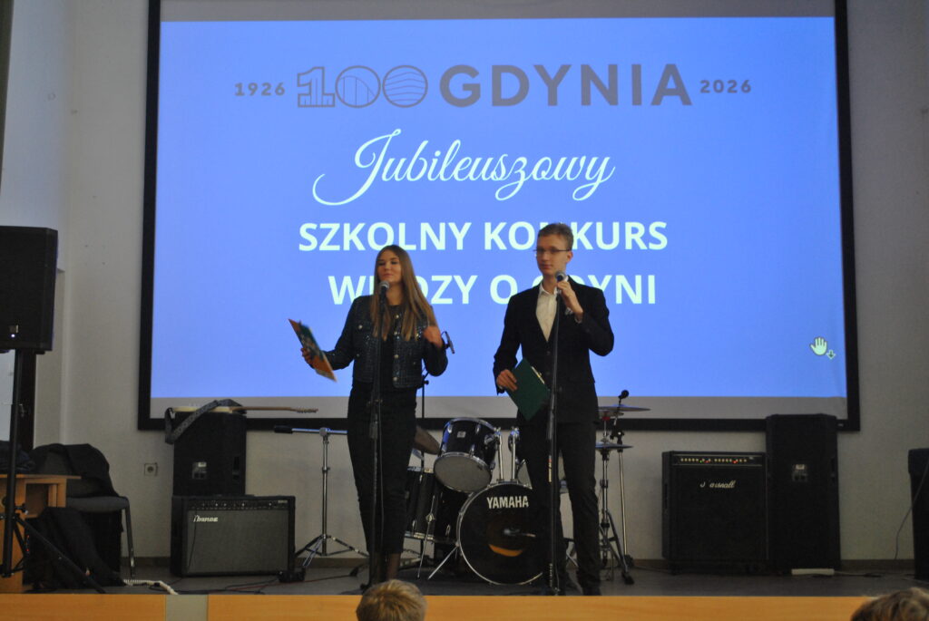 13 stycznia w auli szkolnej podczas piątej i szóstej lekcji rozstrzygnął się finał specjalnej szkolnej edycji Konkursu Wiedzy o Gdyni, nawiązujący do jubileuszu stulecia naszego miasta, które decyzją Senatu Rzeczypospolitej Polskiej zostało ogłoszone Patronem Roku 2026. Inicjatorem konkursu był Pan Dyrektor – Wiesław Kosakowski.