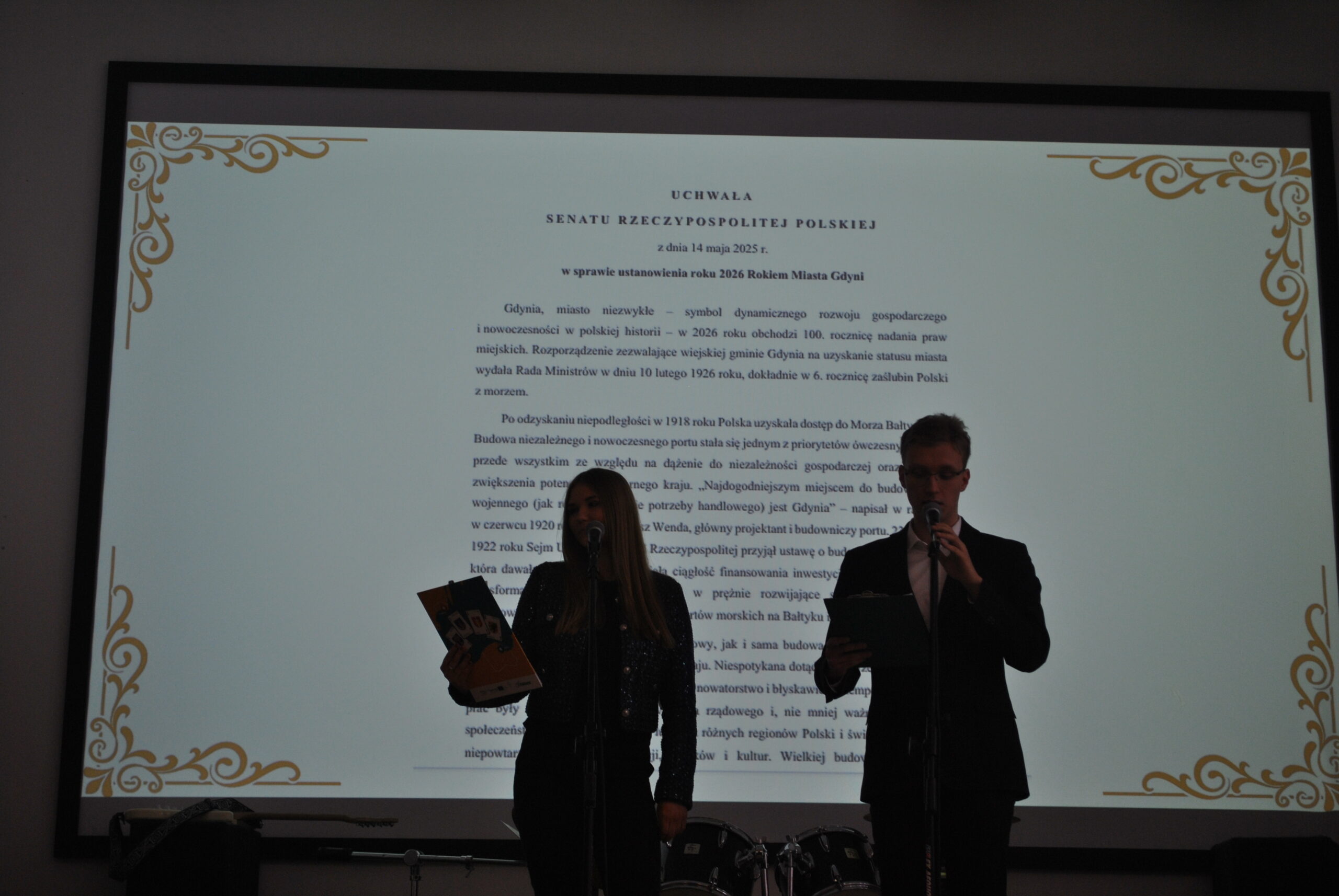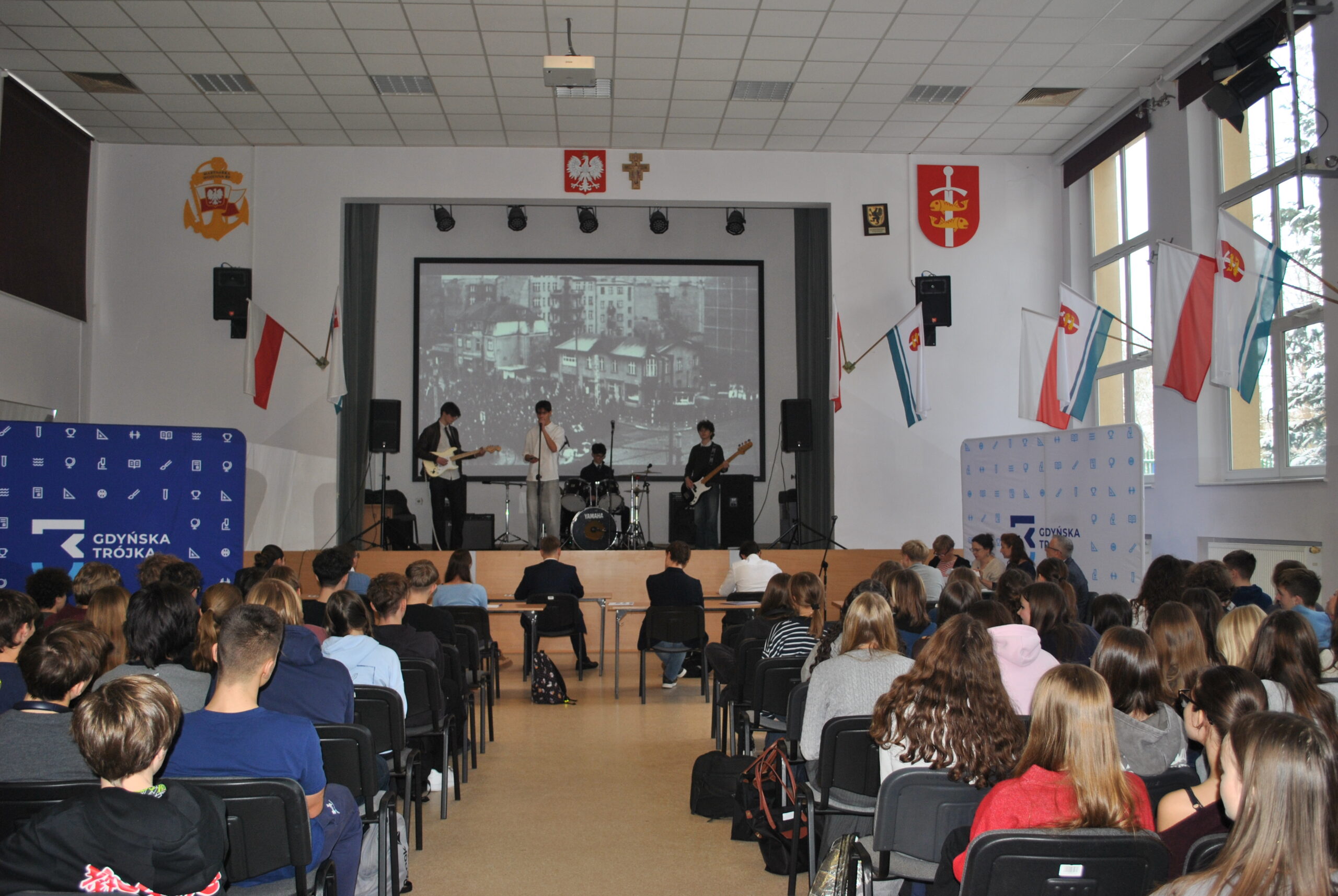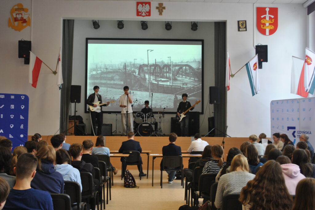 Oprawę muzyczną zapewnił szkolny zespół TriBand wykonując utwory związane z historią Gdyni. Balladę o Janku Wiśniewskim wzruszająco wykonał Jędrek Bansleben.