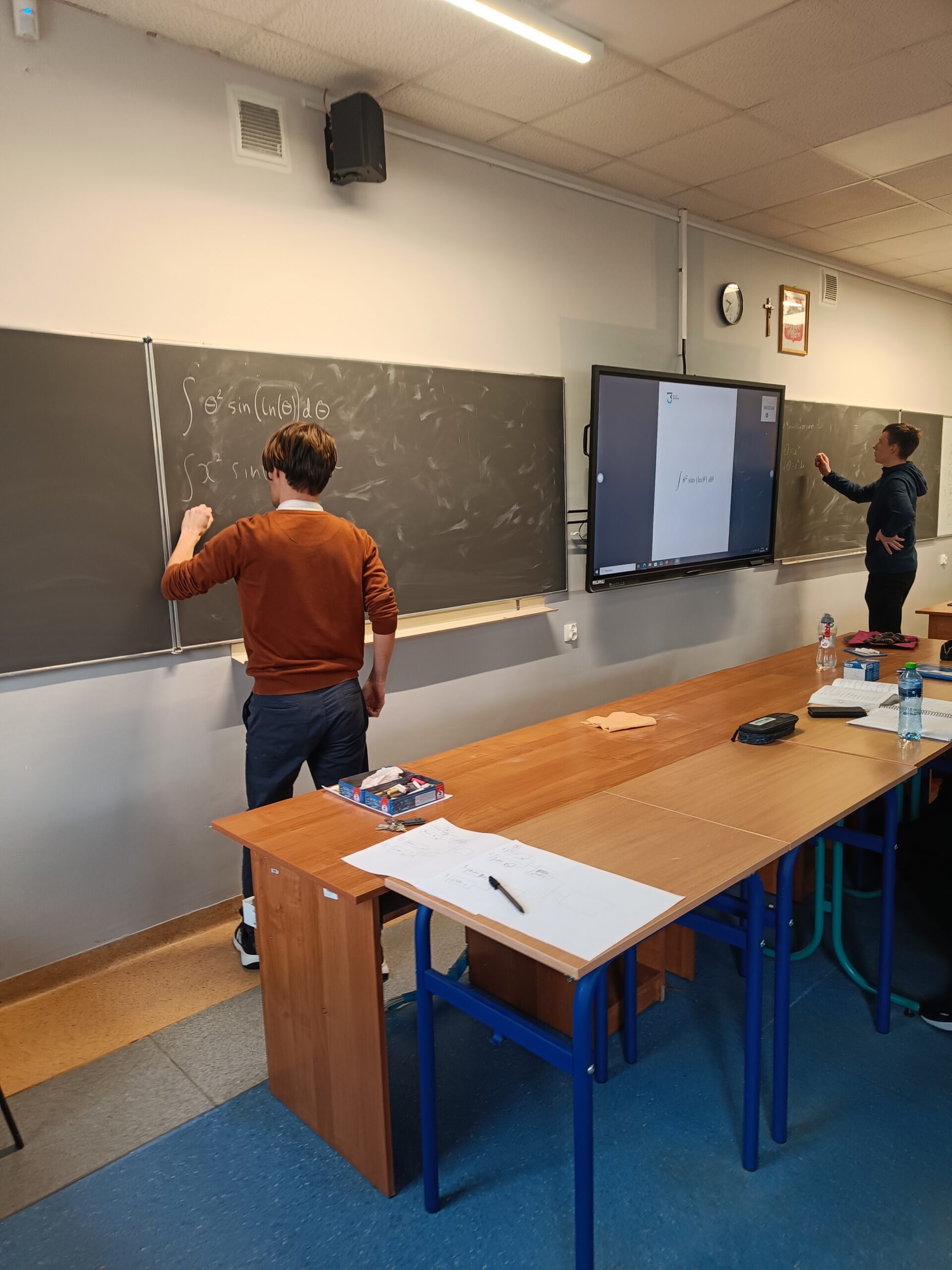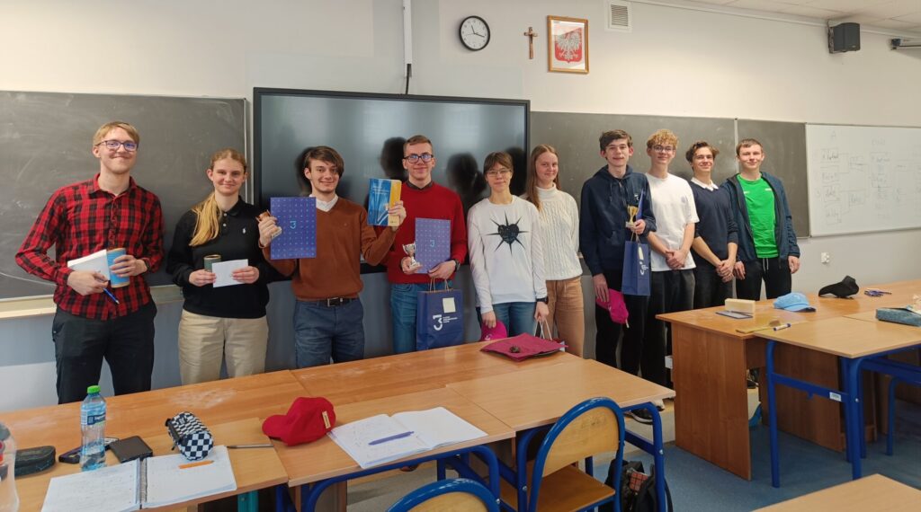 Po wspaniałej walce z całkami, na bardzo wysokim poziomie, przy licznej widowni mistrzem całkowania okazał się Mateusz Schűttenberg, tuż za nim ubiegłoroczny mistrz Mikołaj Kropidłowski, na miejscu trzecim uplasował się Aliaksei Krutalevitch. Dzięki uprzejmości Pana Dyrektora i Rady Rodziców zwycięzców nagrodziliśmy upominkami.